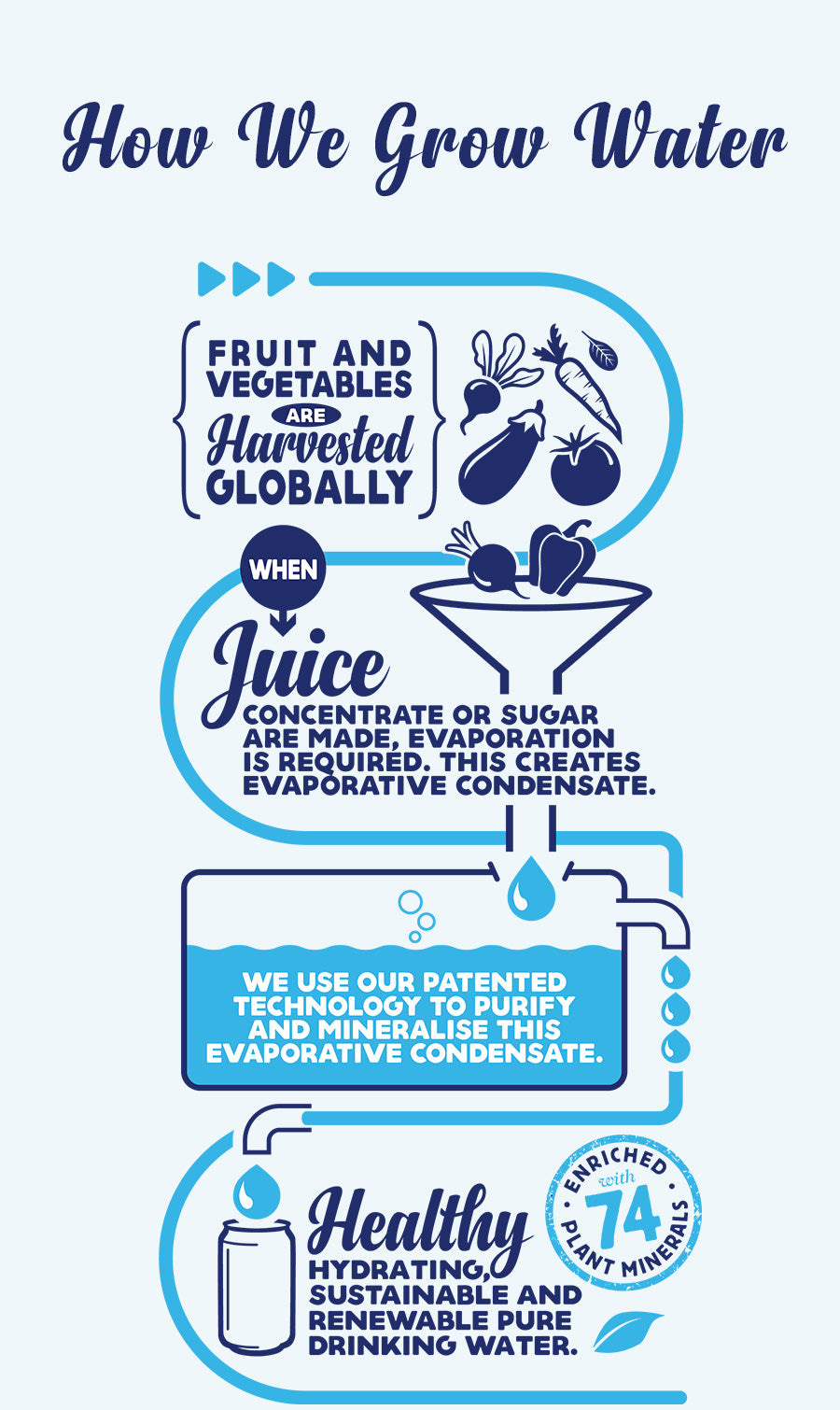 Everyone knows that pure water is vital for our health and wellbeing. In a world first, we’ve found a way to harvest the water stored in fruit and vegetables and bottle it for your enjoyment using an award winning Australian invention.